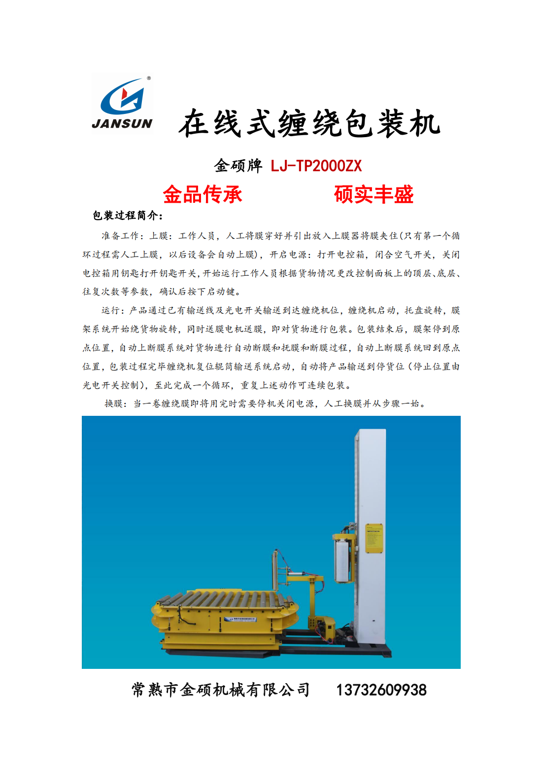 > 产品中心 > 金硕 LJ-TP2000ZX在线式缠绕包装机
